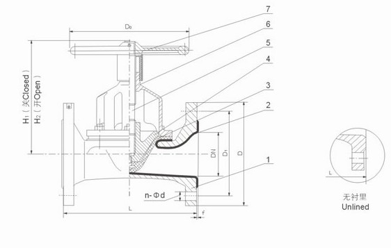 附3、視膠隔膜閥的閥體內(nèi)腔表面視復有廳供選擇的多種橡膠。因此具有優(yōu)越的耐腐蝕的特點。