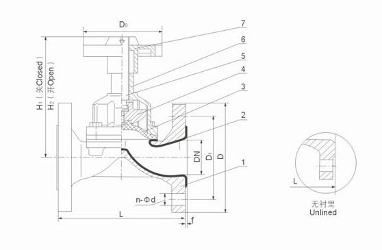 附3、視膠隔膜閥的閥體內(nèi)腔表面視復(fù)有廳供選擇的多種橡膠。因此具有優(yōu)越的耐腐蝕的特點(diǎn)。