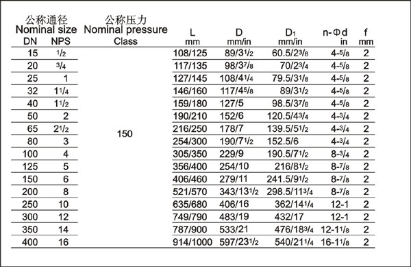 壓力等級(jí):磅(Lb)125 150