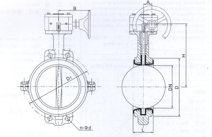 1.閥體 2.蝶圈 3.蝶板 4.四氟圈 5.碟形彈性墊圈 6.手柄定位板 7.手柄