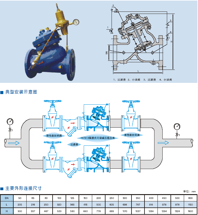 ( 7 )水利控制閥主閥體上的箭頭方向必須與管路系統流向一致。