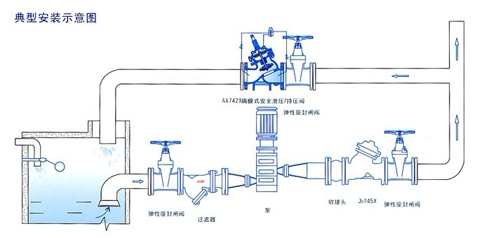 隔膜式安全泄壓/持壓閥前要安裝過濾器,并應便于排污的要求。