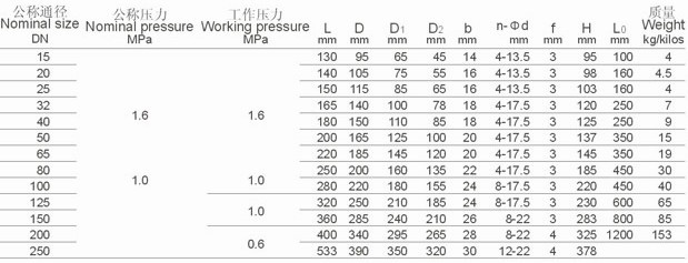 公稱(chēng)壓力:PN1.0~1.6(MPa)