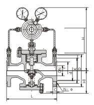 六、YK43X先導活塞式氣體減壓閥外形尺寸(PN6.4-16.0) 單位:mm