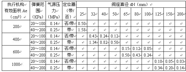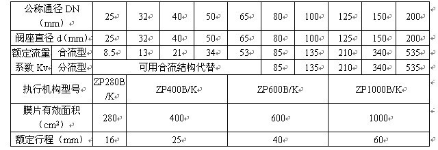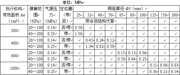 注 1)對(duì)于ZXQ(X)W型三通波紋管密封調(diào)節(jié)閥,最大允許壓差為1.0MPa,表中數(shù)據(jù)若數(shù)值小于1.0MPa則不變,若數(shù)值大于1.0MPa,則取值1.0MPa。