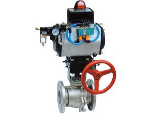 當氣動執行機構接受到來自調節儀表的信號,帶動閥桿、球芯作旋轉運動,使閥由開(關)的位置轉到關(開)的位置,達到對管道內介質流通、切斷的控制。