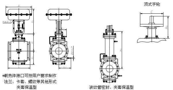 ZXNJ型調(diào)節(jié)閥帶有保溫夾套,用于流體冷卻后易結(jié)晶、凝固造成堵塞的場(chǎng)合。
